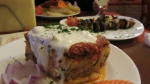 On night one we ate at La Mama’s, a restaurant that was very cheap and had great food and service. It was so good, in fact, that we returned the next night after seeing the philharmonic concert (it was just next door). Big mistake. Service was so slow that we were literally about to leave after sitting for 30 minutes without even a drink order being taken. The food, when it finally arrived, was warm at the edges and stone cold in the centre. When we complained (very mildly I might add, compared to the way we’ve witnessed French and German travellers complain) the waiter simply told us that our moussaka was meant to be cold. We placated ourselves by not leaving the – obligatory – 10% tip.