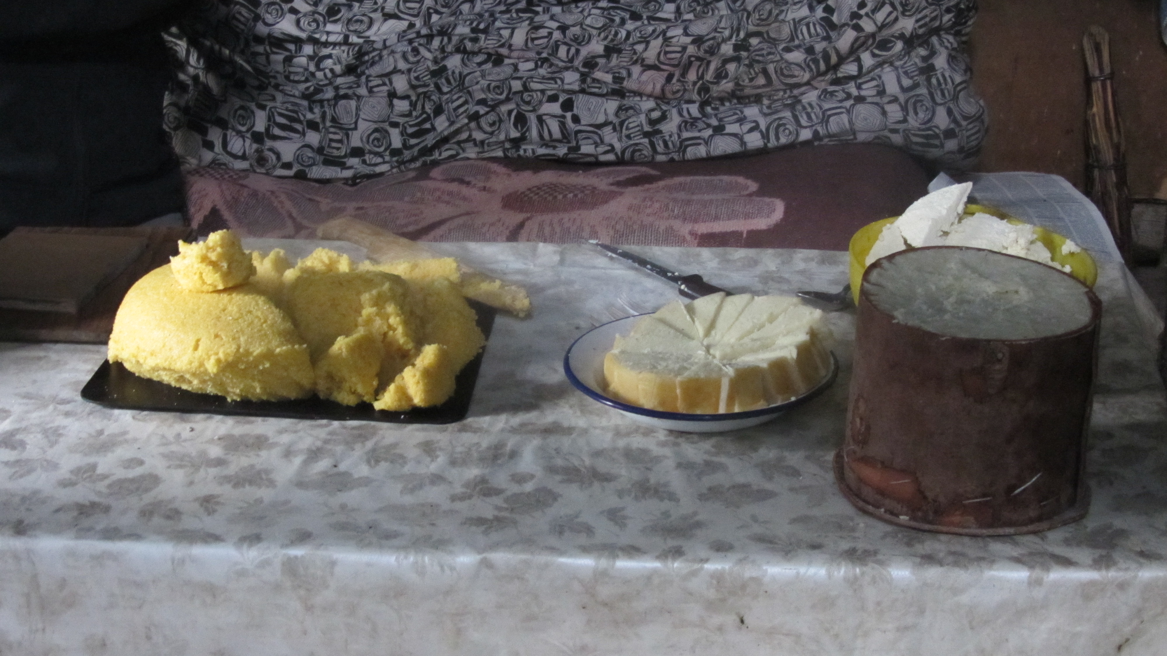 During the day, the herds are walked through the mountains to feed on the lush grasses, promoting milk production. The herd is milked 2 or 3 times a day and the milk turned into two types of cheese – one a ricotta-like soft cheese, the other a very tasty mild cheddar with a smooth and creamy texture. The shepherds sell the cheeses to locals throughout the summer. It made me understand how ‘cottage cheese’ got its name, from the cottage cheese industry. At the camp we were treated to a cheese and polenta lunch. It was so tasty and filling after a very hard morning’s walk. Simple, rustic but wholesome.