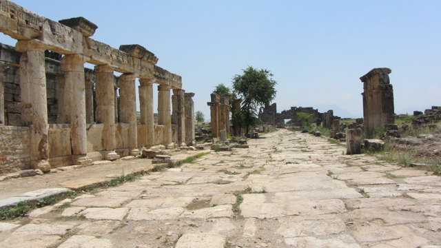 The Plutonium (Pluto’s Gate): a structure enclosing a small, hellish cave filled with naturally off-gassed carbon dioxide, into which priests ventured to prove their divine protection from Pluto (God of the Underworld). The Martyrium, thermal baths, and Temple of Apollo also remain in partial completeness. Finally stands the Theatre, with its significant decorative friezes depicting mythological scenes and deities.